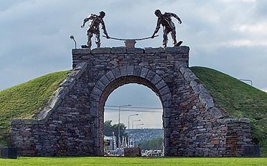 Mayo Sandstone built with mortar joints in a random rubble style. Following the family tradition of stone-masonry, Michael is a highly skilled, expert stone mason, working on both private and public projects, such as the Dry Arch Roundabout in Letterkenny.